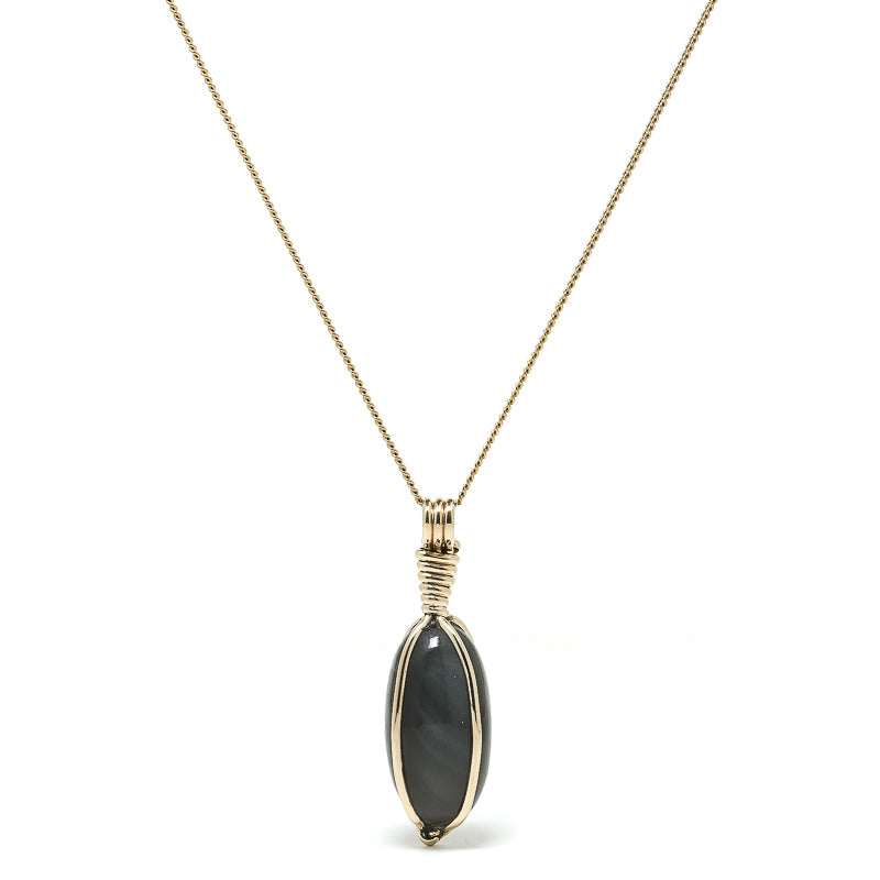 This Grey Moonstone Polished Crystal is from India and is wrapped in 9Kt Yellow Gold.
