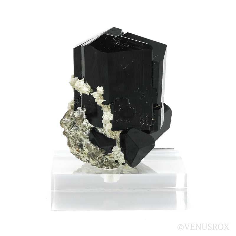 A beautiful Black Tourmaline with Smoky Quartz Natural Cluster from Rondekop, Erongo Mountains, Karibib District, Erongo Region, Namibia mounted on a bespoke stand