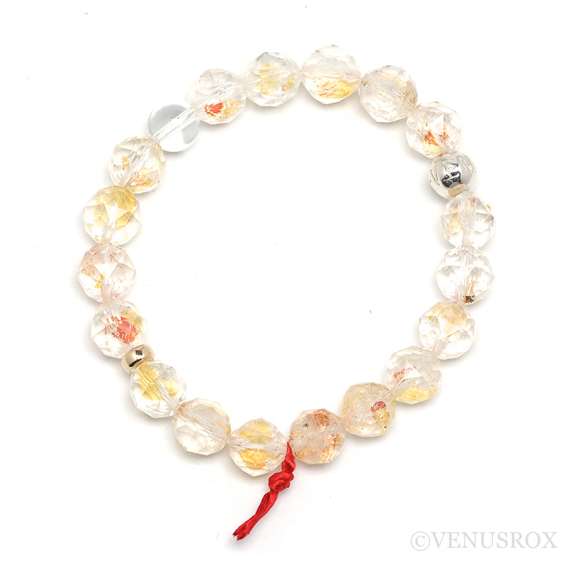 The beads are mounted on high strength elastic and also included in the bracelet is one Clear Quartz Bead, a Sterling Silver bead and a 14Kt Gold-Filled Bead.